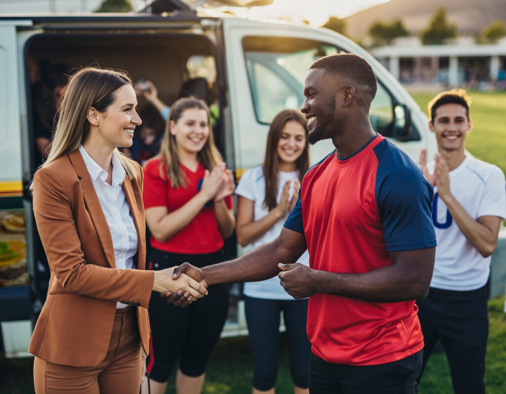 Wir bringen Menschen, Vereine, Institutionen und regionale Unternehmen zusammen. Durch die gezielte Platzierung von Anzeigenflächen auf dem Fahrzeug wird dieses für Sie finanziert. Die beteiligten Unternehmen präsentieren sich mit ihrer Anzeige auf dem Fahrzeug als Partner Ihres Projekts – sichtbar, sympathisch und mitten im Alltag. So entsteht ein Zusammenhalt, der weit über reine Marketingmaßnahmen hinausgeht: ein echtes Miteinander, das lokale Wirtschaft und soziales Engagement vereint. Ihr Fahrzeug wird dadurch zum Botschafter regionaler Stärke und Gemeinschaft.